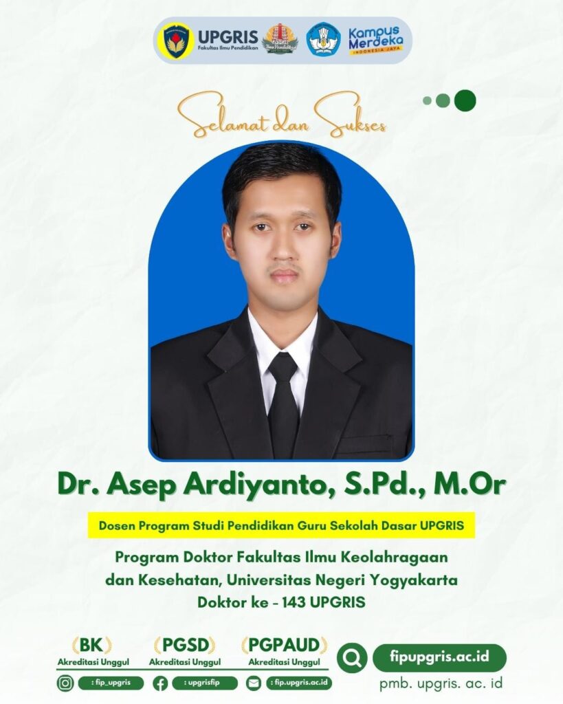 “Fakultas Ilmu Pendidikan UPGRIS mengucapkan selamat kepada Dr. Asep Ardiyanto, S.Pd., M.Or, Dosen PGSD FIP UPGRIS, atas diraihnya gelar Doktor.
