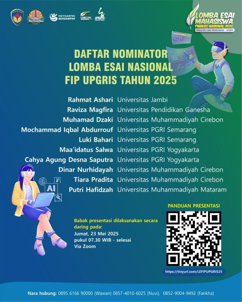 Selamat kepada peserta lomba esai nasional FIP UPGRIS 2025.