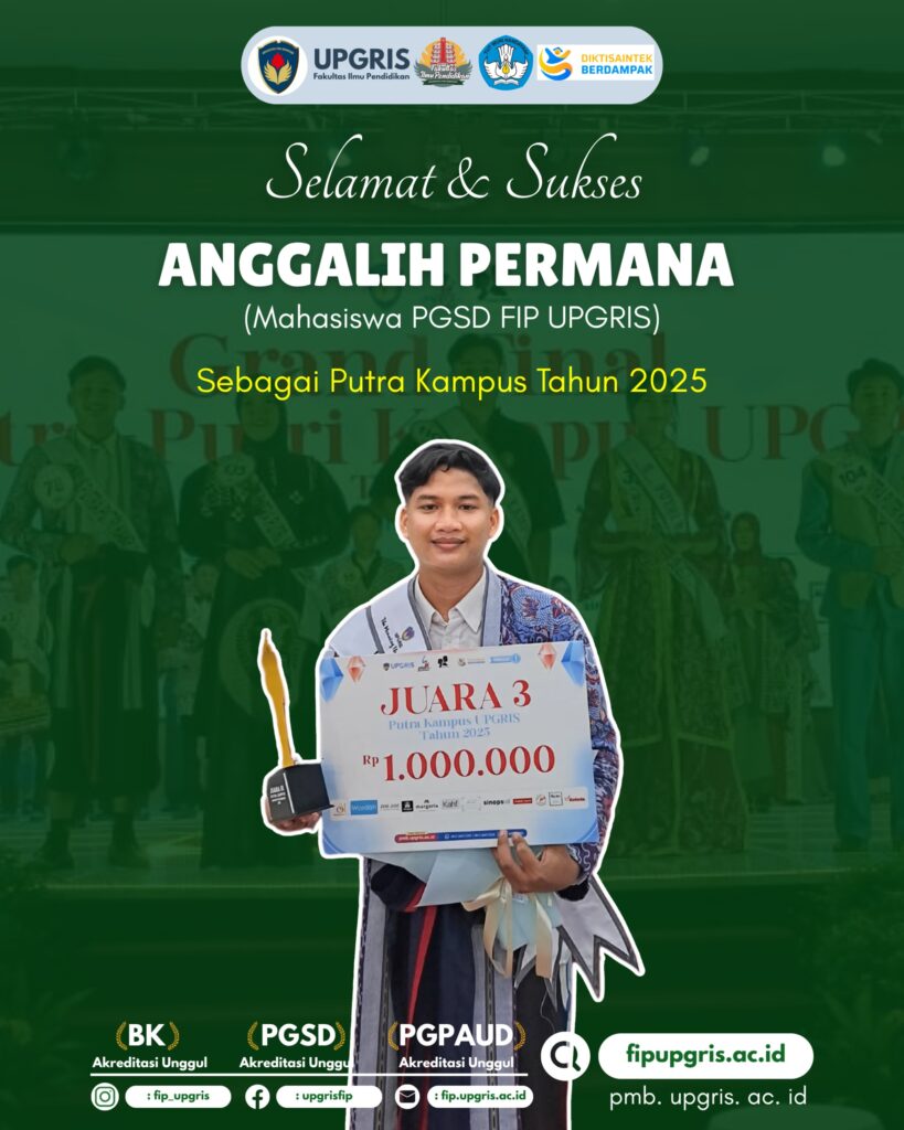 atas prestasinya sebagai Juara 3 Putra Kampus UPGRIS Tahun 2025 🏆✨