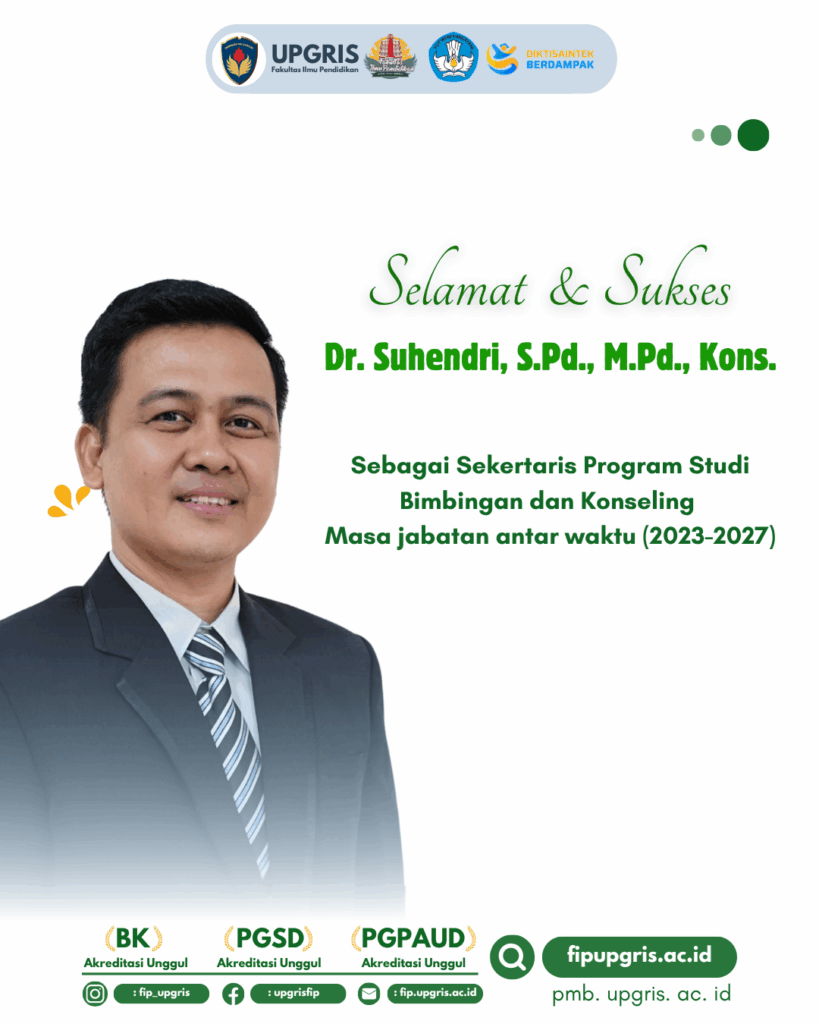 Fakultas Ilmu Pendidikan UPGRIS mengucapkan selamat kepada Dr. Suhendri, S.Pd., M.Pd., Kons.