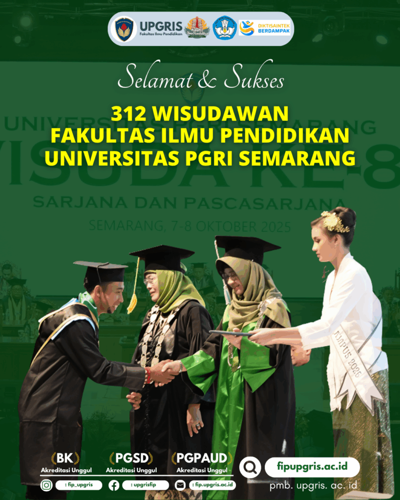 Selamat Atas Gelar Sarjana Pendidikan Kepada 312 Wisudawan Fakultas Ilmu Pendidikan pada Wisuda Ke-81 Universitas PGRI Semarang.